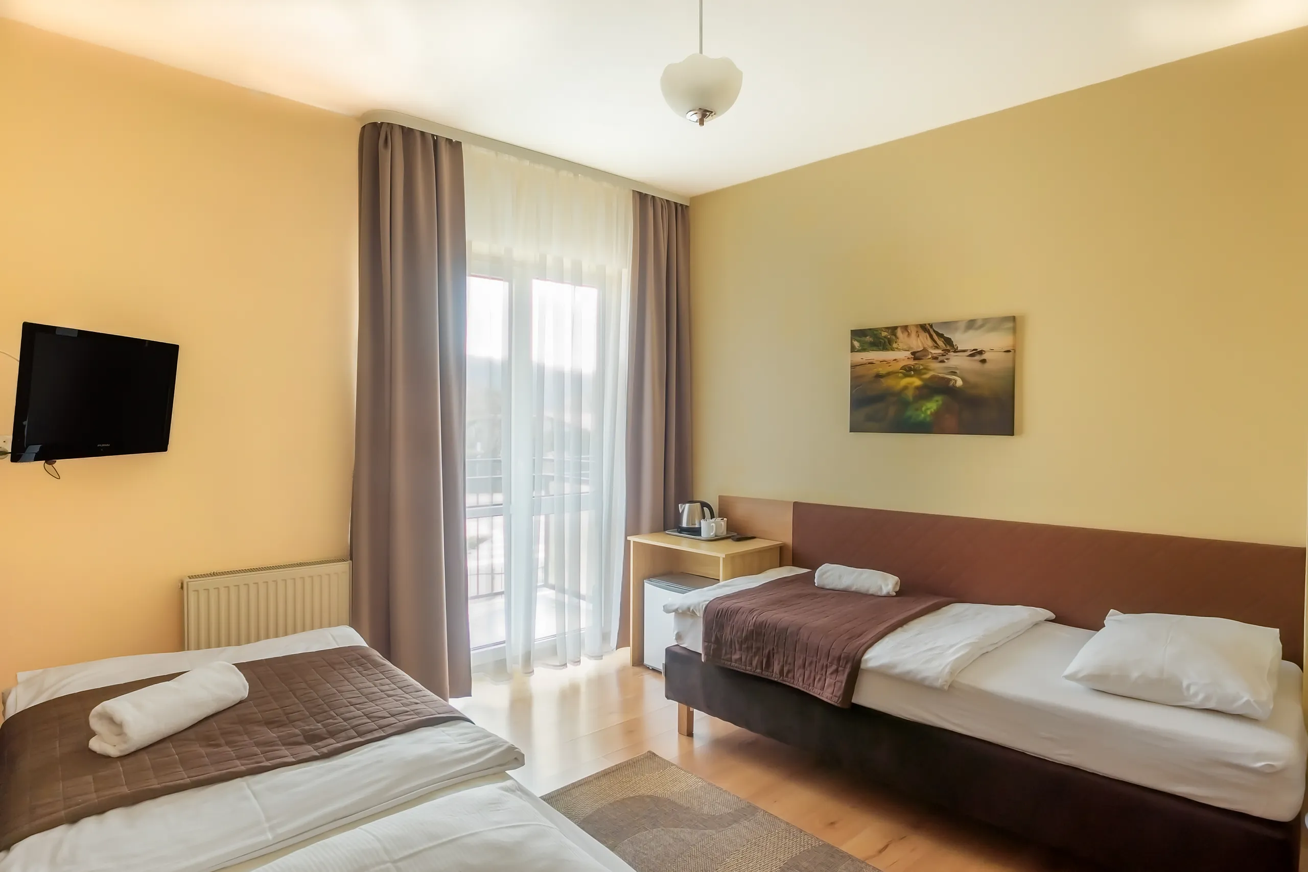 Pokój standard to miejsce eleganckie, czyste oraz wyposażone we wszystkie potrzebne akcesoria, dzięki którym wypoczniesz nie rezygnując przy tym z wygody. Wieczorami, po długich spacerach na plaży, zrelaksujesz się oglądając filmy w TV. Poza tym nie musisz zabierać ze sobą ręczników – wszystko dla Ciebie przygotowaliśmy.
